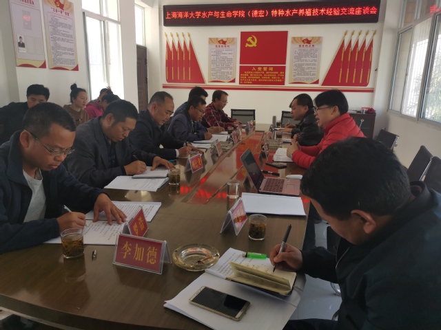 1月17日下午,黄旭雄一行在芒市水产技术推广站与德宏州水产技术推广人员进行座谈,交流了在葡京8883官网入口的技术支持下2019年德宏州特种水产技术推广开展的工作和取得的成绩,并就2019年工作存在的问题及2020年的工作任务、工作重点和工作推进计划进行了深入的交流研讨。对于与会人员提出的虾苗标粗和蟹苗培育基地建设、虾蟹养殖组织化产业化程度较低、结合地方特色的优势水产品开发等问题,黄旭雄一一进行了回应,同时就如何通过特种水产养殖技术的普及带动更多的村民脱贫扶志提出了建设性的意见。